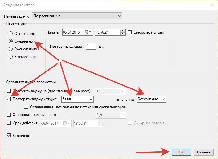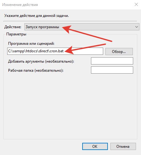 - Программа или сценарий: путь к cron.bat из папки с установленной программой