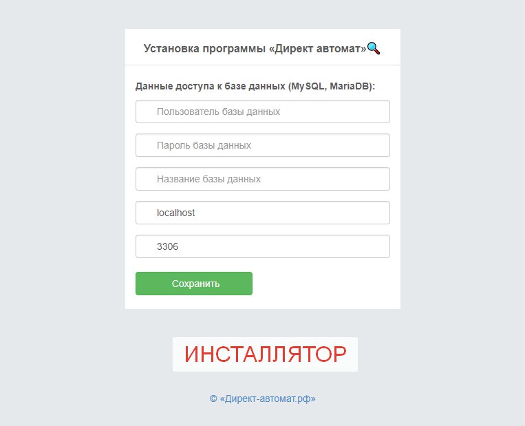 1) Необходимо скопировать все файлы (http://direct-automate.ru/files/da/da.rar) в одну выделенную папку доступную через веб-браузер (например http://ссылка-на-ваш-сайт.рф/direct/) на хостинге с поддержкой PHP5.3+ (+mysqli, +mbstring, +openssl) и MySQL5.0+ (MariaDB5.1+) (рекомендуется до 10000 ключевых фраз любой виртуальный хостинг, свыше 10 тыс. фраз VPS/VDS хостинг от 256Мб оперативной памяти).
