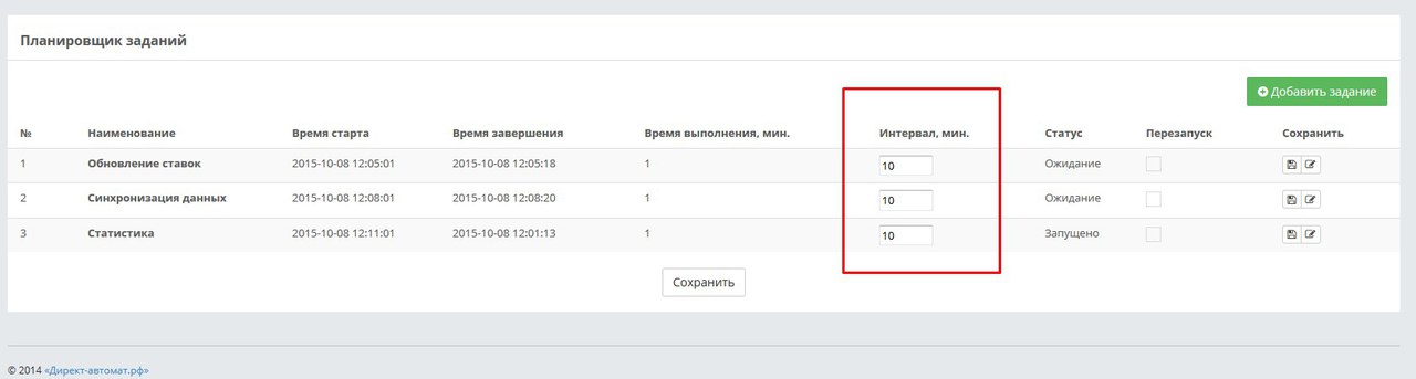 3) Или Интервал мин. в заданиях для " Обновление ставок"