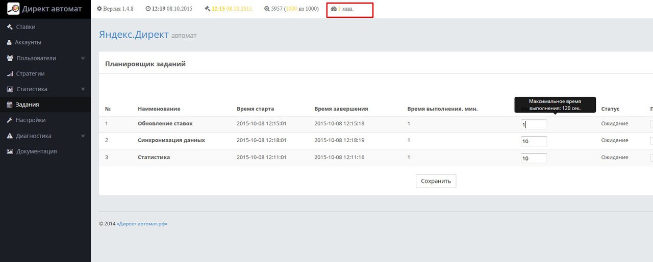 , В разделе Задания можно делать реже запуск заданий чем это делается по расписанию планировщика заданий Крон в панели управления хостингом. Рекомендуемые настройки Обновление ставок раз в минуту - 1