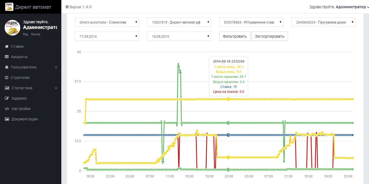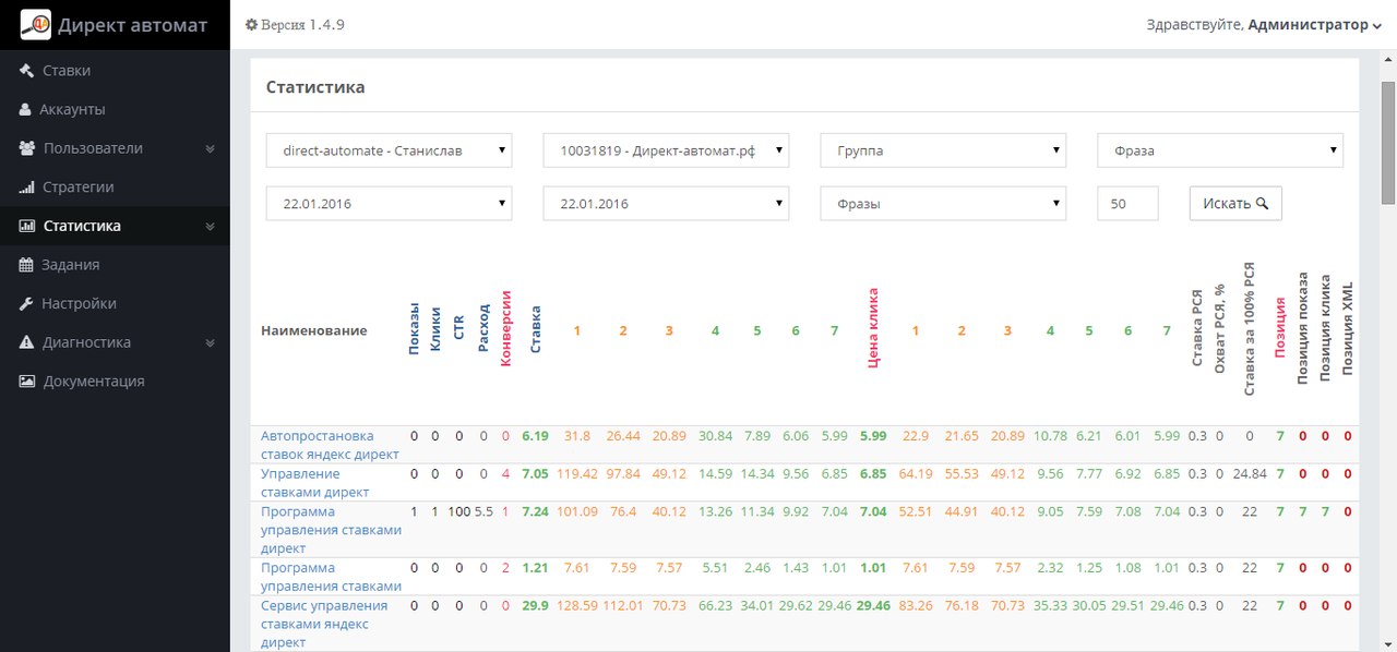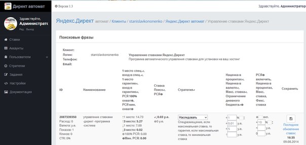 Программа автоматического управления ставками контекстной рекламы Яндекс.Директ и РСЯ.
