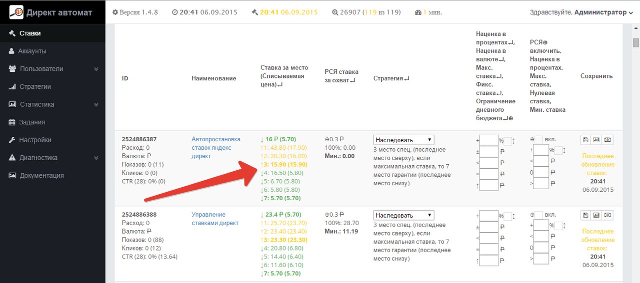 2. Исправлена ошибка округления в АПИ для РСЯ. Теперь принудительно к рассчитанной ставке будет добавляться шаг торгов 0.1 рубль или 0.01$ в зависимости от валюты аккаунта.