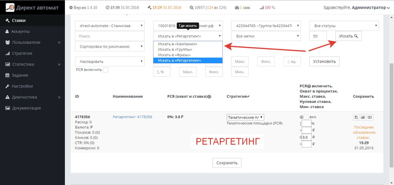 1. Добавлен новый функционал управления ставками ретаргетинга.
