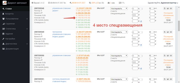 В разделе "Ставки" -> "Кампании" -> "Группы" -> "Фразы" теперь отражаются ставка и списываемая цена за 4 место спецразмещения.