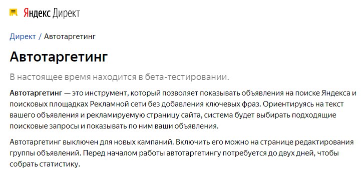 - 1 ноября 2017 Добавлена поддержка автотаргетинга. Ставка для автотаргетинга берется из поля максимальная ставка. Также добавлены новые переменные в свои стратегии для групп объявлений (конверсии, ROI и т.п.): group_click365, group_show365, group_sum365, group_conversion, group_revenue, group_roi